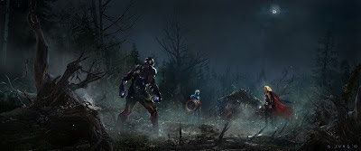 Okay, I guess I'll throw you a little bonus sample this week, even though I told you I wouldn't - but only because these just popped up and I think they look really cool. But below is some of the concept art from "The Avengers". There are a handful of scenes, which, if you've seen the movie, you'll see right where they fit in. These were done by artists Nathan Schroeder and Steve Jung. I think these look wonderful, this first one especially. I'd love to have a framed print of that.